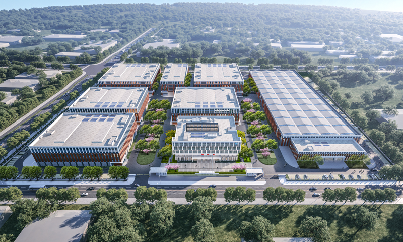智慧信息產(chǎn)業(yè)園占地151畝,設(shè)有廠房7棟,辦公樓1棟,總建筑面積約13.3萬平方米,將于2024年年底正式交付使用。