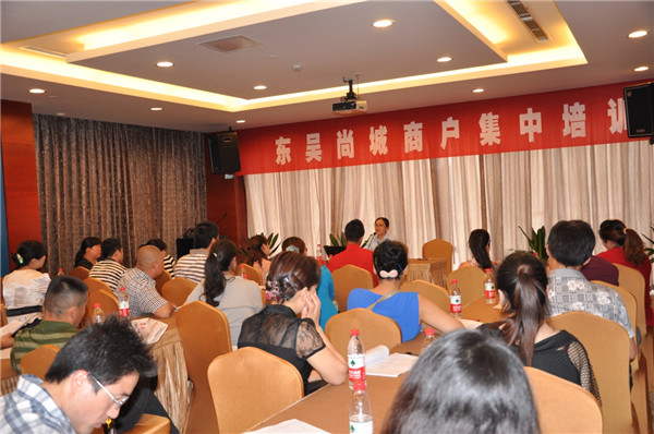 為確保東吳尚城7月中旬順利開(kāi)業(yè),6月3日起,開(kāi)發(fā)公司組織開(kāi)展了入駐商戶集中培訓(xùn)活動(dòng),40余家簽約商戶參加培訓(xùn)。在當(dāng)天上午的培訓(xùn)中,開(kāi)發(fā)公司相關(guān)部門負(fù)責(zé)人向商戶介紹了工程進(jìn)展、入場(chǎng)裝修注意事項(xiàng)以及物業(yè)管理等方面的事宜,并詳細(xì)解答了商戶提出的問(wèn)題。