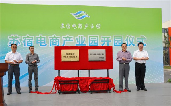 開園儀式上,顧玉坤同蘇州歐富朗電子商務(wù)有限公司總經(jīng)理趙慧、團市委書記陳偉、宿遷學(xué)院科技處處長周德廉共同為“宿遷市青年創(chuàng)業(yè)孵化基地”、“ 宿遷學(xué)院學(xué)生實習(xí)實訓(xùn)基地”揭牌。