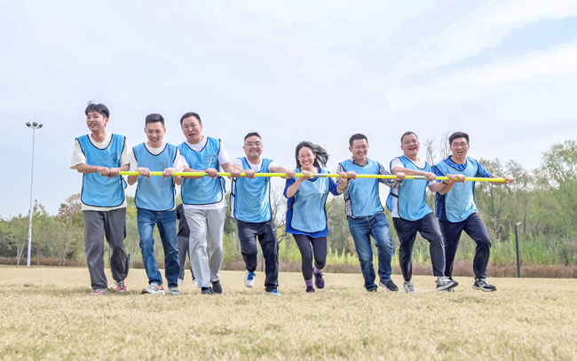 秋日和煦的陽光里,拓展基地林木蔥蘢,綠草如茵,所有參加人員隨機進行破冰分組,大家以團隊為單位共同完成藍圖繪制以及運轉乾坤、旋風繞桿跑、拔河比賽等活動,現(xiàn)場氣氛熱烈。大家通力合作,奮力拼搏,充分展示出攜手互助的團隊精神和蓬勃向上的激情活力。