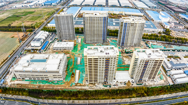蘇宿工業(yè)園區(qū)為滿足入園企業(yè)集中住宿需求,讓企業(yè)擁有更多的精力專注于生產經(jīng)營,建成第一集宿區(qū)-園區(qū)公舍,在建第二集宿區(qū)-青年公寓。青年公寓一期項目建筑面積約13.6萬平方米,含藍領公寓、白領公寓、商業(yè)樓,項目建成后可入住員工約8000人。