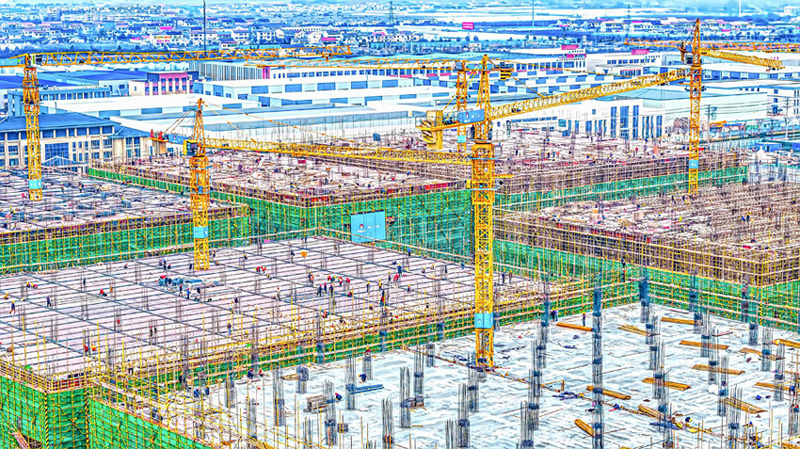 2023年12月26日,蘇宿工業(yè)園區(qū)智慧信息產(chǎn)業(yè)園項(xiàng)目施工現(xiàn)場(chǎng),工作人員正在有序施工。