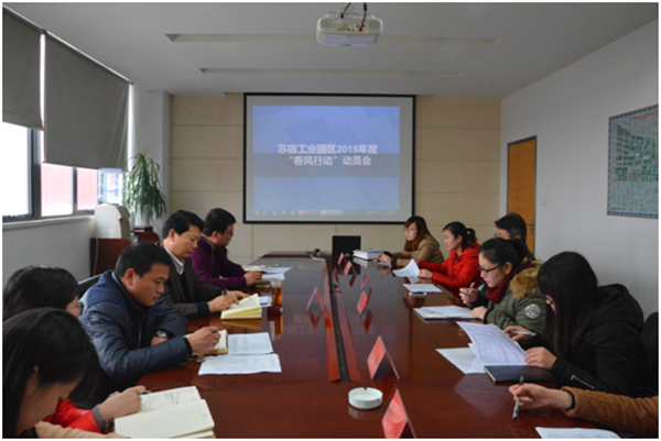為搶抓春節(jié)招聘良機(jī),服務(wù)好園區(qū)企業(yè)用工,2月15日下午,園區(qū)召開2015年度“春風(fēng)行動(dòng)”推進(jìn)會(huì),可成、長(zhǎng)電、天御、蘇瓷等7家園區(qū)重點(diǎn)用工企業(yè)參加了會(huì)議。