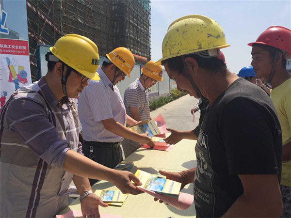 6月12日上午,園區(qū)規(guī)劃建設(shè)局深入園區(qū)建筑工地施工現(xiàn)場(chǎng)開(kāi)展建筑施工“安全生產(chǎn)月”活動(dòng)。通過(guò)掛橫幅和發(fā)放宣傳冊(cè)、宣傳單等形式向工人宣傳知識(shí)。