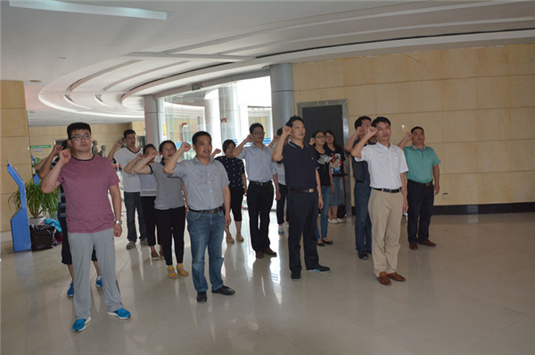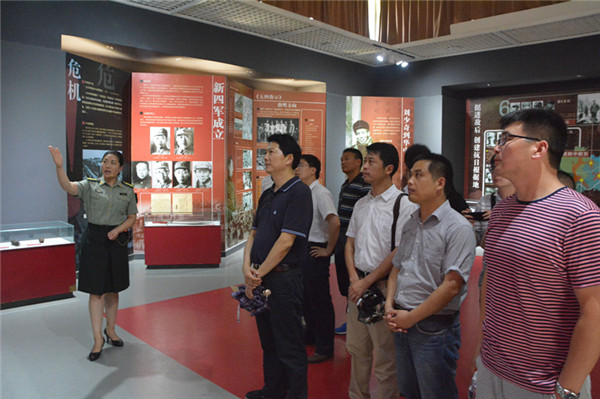 全體黨員干部參觀了紀(jì)念館,展館里大量的歷史文獻(xiàn)、珍貴的革命文物和各個時期的新聞圖片、資料再現(xiàn)了新四軍軍部在黃花塘運籌于帷幄之中,決勝于大江南北的豐功偉績。在紀(jì)念館大廳,全體黨員面對鮮紅的黨旗,莊嚴(yán)地舉起右拳齊聲宣誓,重溫了入黨誓詞。