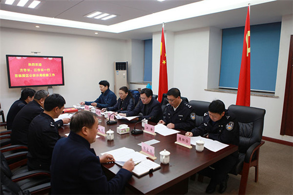 1月13日下午,副市長、園區(qū)黨工委書記、管委會主任方文浜,副市長、市公安局黨委書記、局長江海等領(lǐng)導(dǎo)來到園區(qū)公安分局開展走訪慰問活動,先后慰問了全體民警和部分輔警代表,實(shí)地察看園區(qū)派出所技術(shù)用房辦案區(qū)、戶政大廳和指揮調(diào)度中心等場所。